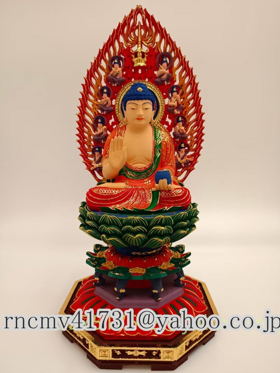 - 「81SHOP」薬師瑠璃光如来座像★ 極上品 仏教美術 彩繪 薬師如来 縁起物 極彩色 仏像 木製
