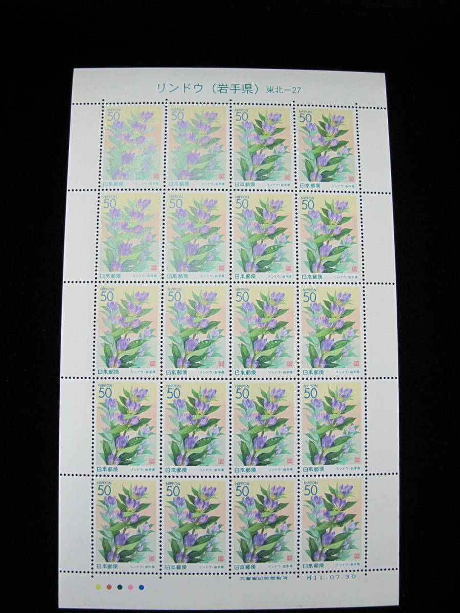 - ふるさと切手 平成11年 リンドウ 岩手県 東北-27 50円切手 記念切手シート