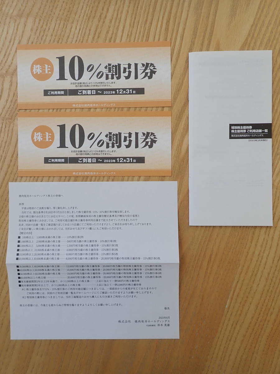 - 【株主優待券】株式会社焼肉坂井ホールディングス 10%割引券 2枚
