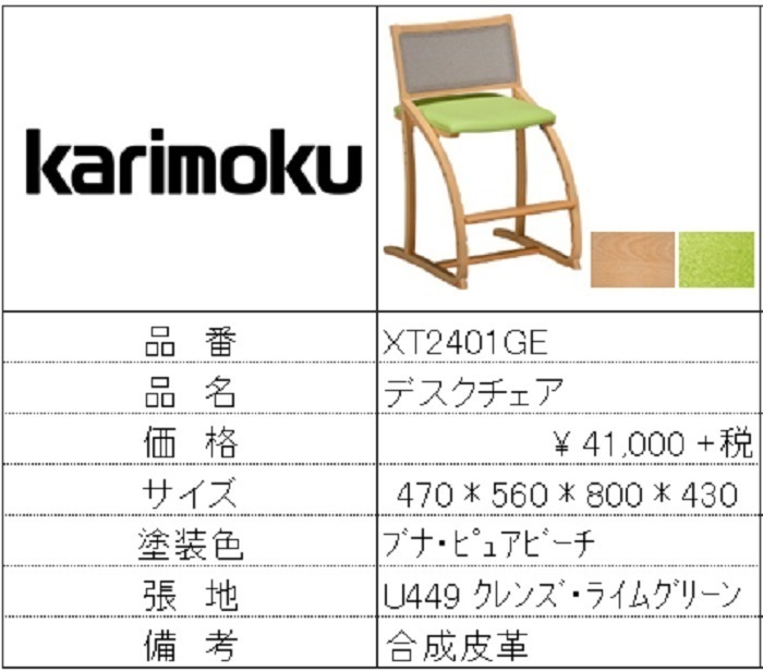 - 【カリモク家具・人気第1位学童椅子】デスクチェアXT2401E449(緑)