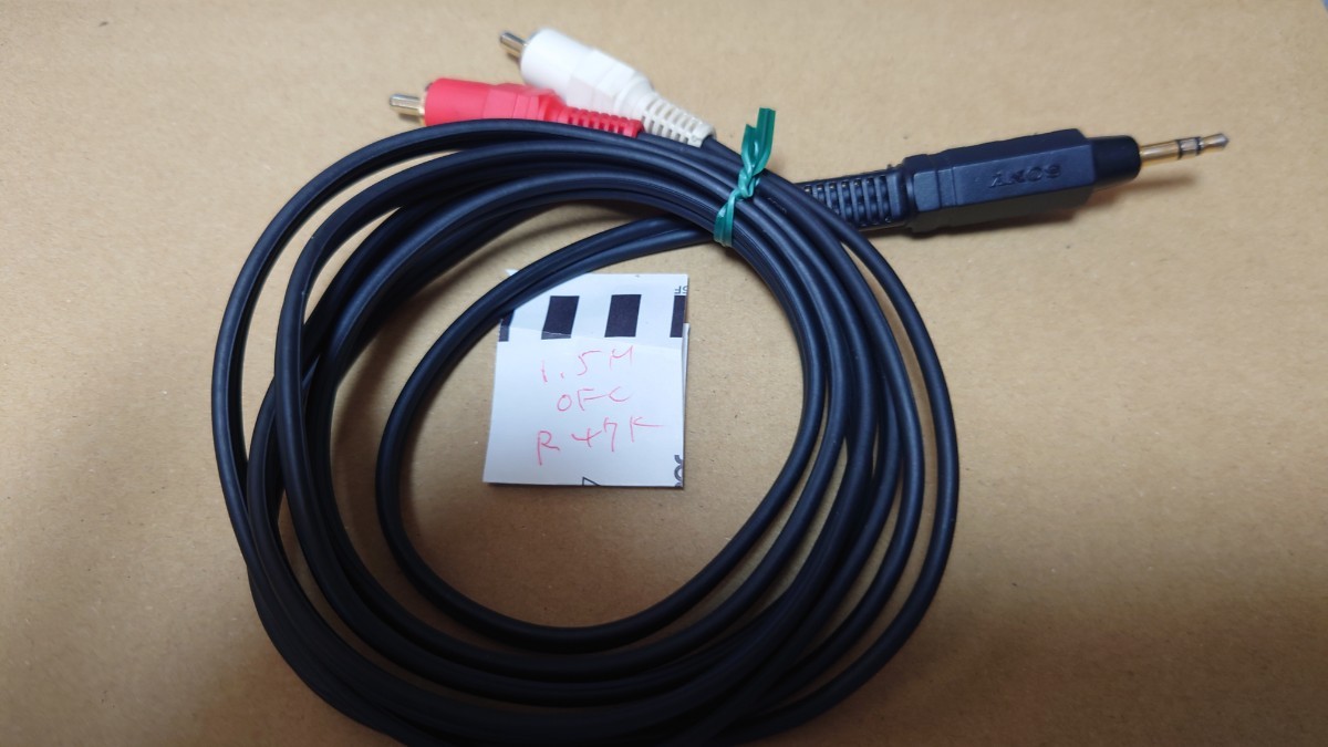 - SONY純正 3.5mmステレオミニプラグ-ステレオRCAプラグ 約1.5m 抵抗入(47kΩ) 中古 OFC線材