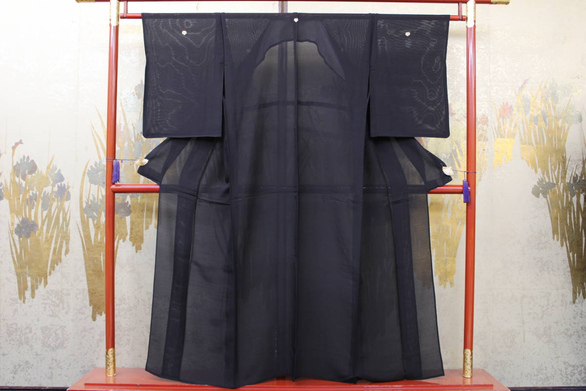 > きもの今昔5289 黒の礼装 正絹絽広衿単衣セブセ付き仕立て 家紋「五三の桐」 着丈150cm