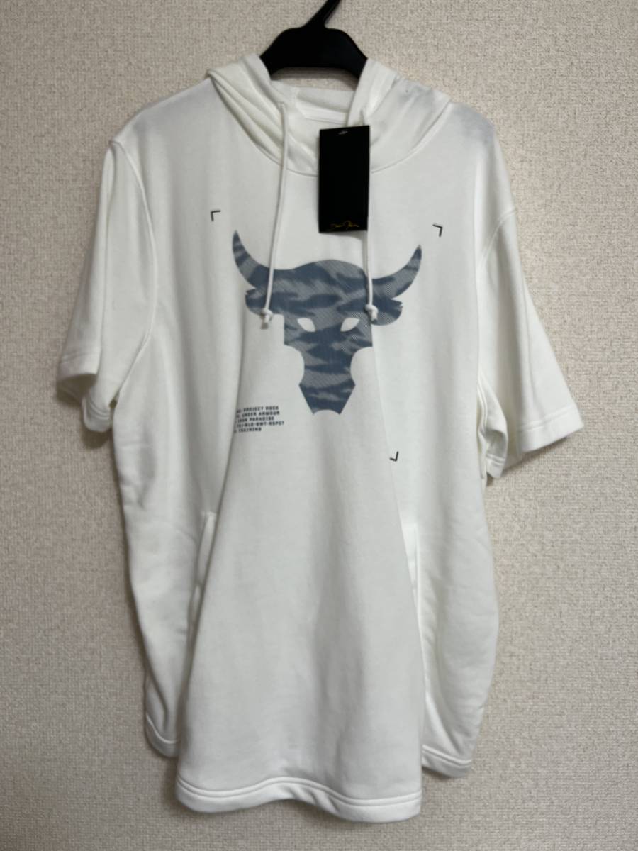 > ■最終価格 新品未使用 タグ付き BLOOD.SWEAT.RESPECT TEAM ROCK 半袖 プリント パーカー ホワイト ゆったり サイズXL メンズ