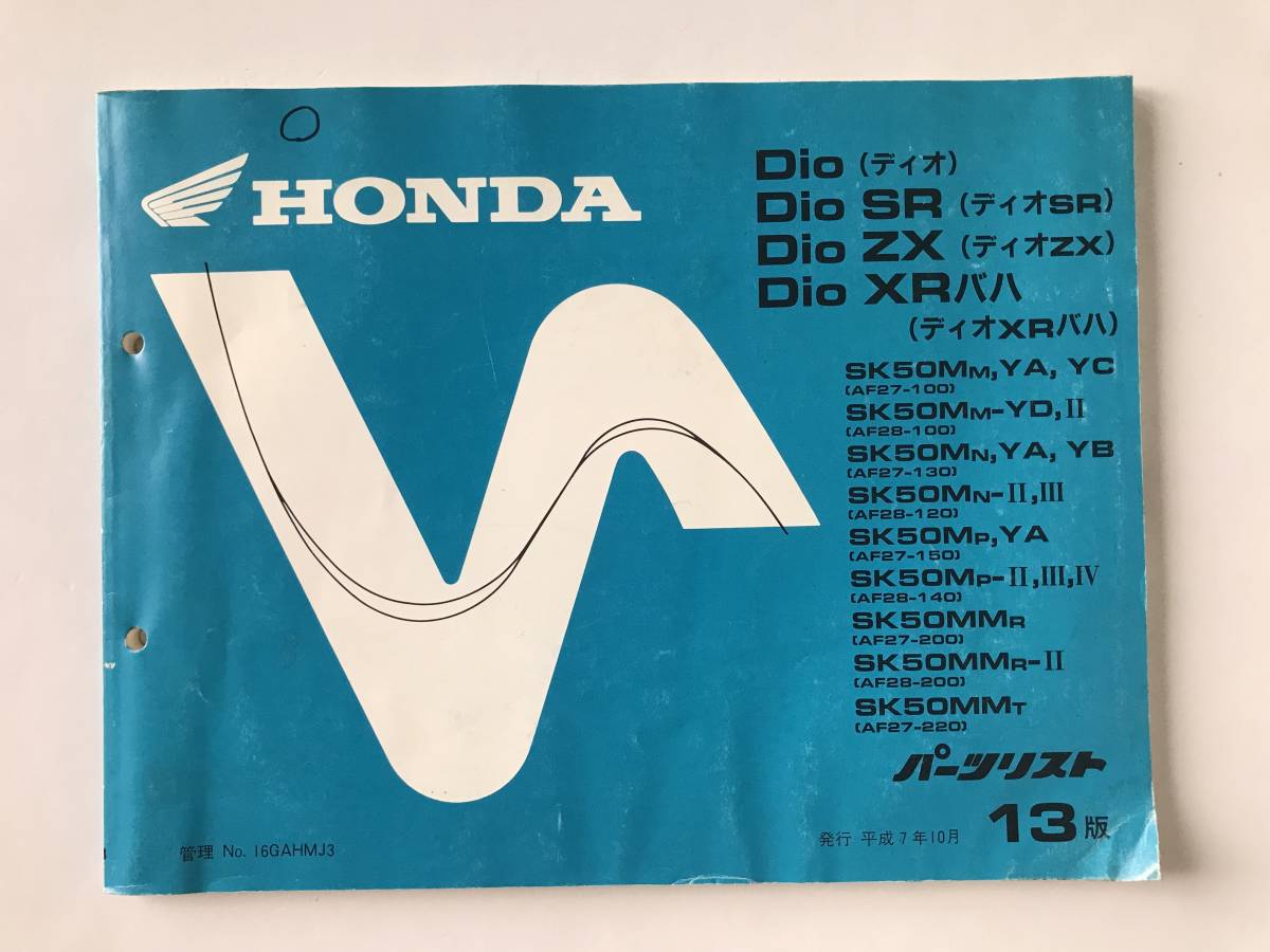 - HONDA パーツリスト Dio Dio SR Dio ZX Dio XRバハ 平成7年10月 13版 TM8079