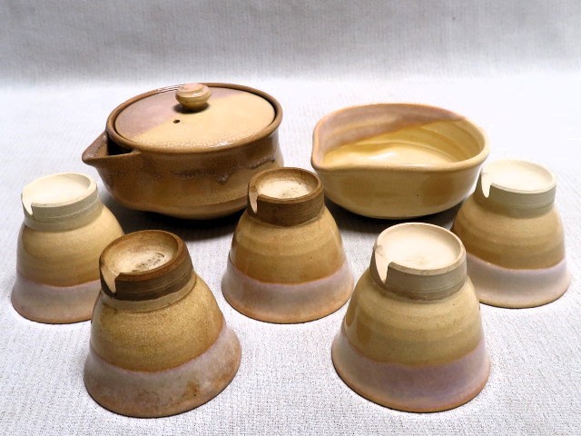 - 萩焼 煎茶碗5客 宝瓶 湯冷まし 萩松月 煎茶器 煎茶道具