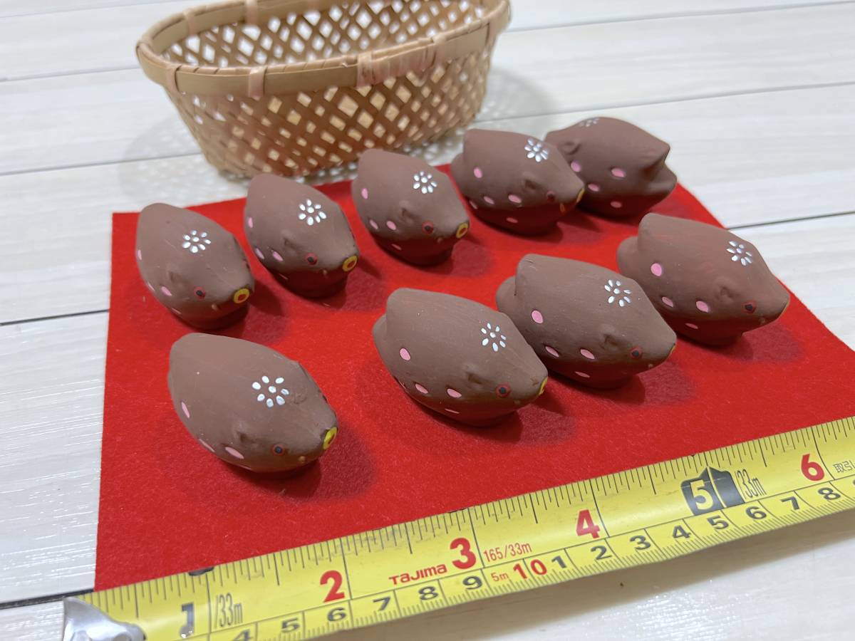 - [民芸品 閉店セール]イノシシ ウリ坊 ミニーうり坊 ザル付 亥年 9体 チョコ色