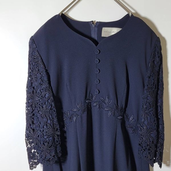 > ミユキ MIYUKI ワンピース 5分袖 バックファスナー 袖レース サイズ11 ネイビー 紺色 日本製 レディース ストア