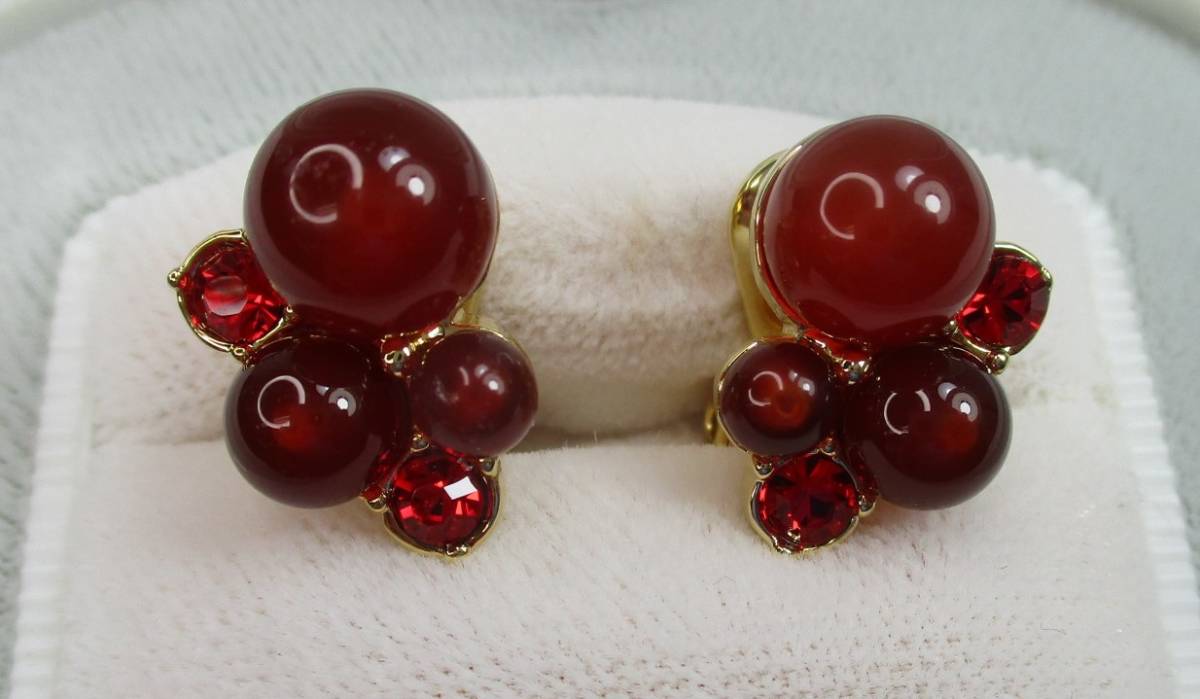 - P-73 美品 バンドームブティック VB イヤリング ぶどう カットガラス レッド 赤