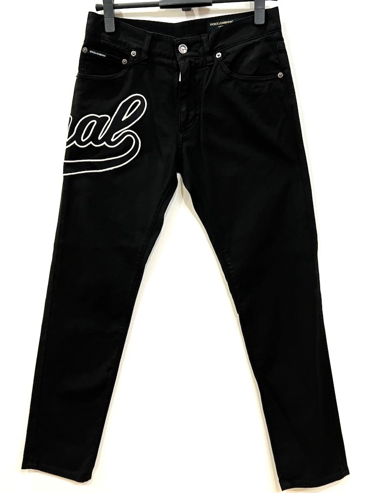- メンズ ドルチェ&ガッバーナ 刺繍 チノパン CAPRI ブラック 44
