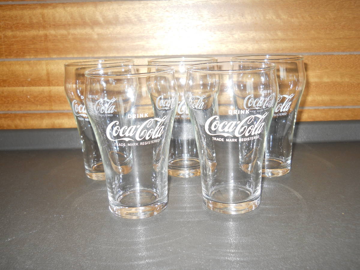 > ①コカ・コーラ グラス5つ ドリンクグラス TRADE MARK REGISTERED ※キズあり FOUNTAIN GLASS