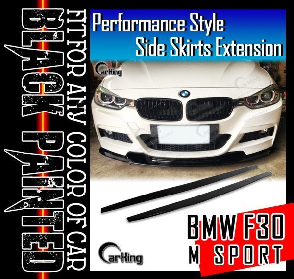 - 艶消し黒 BMW 3シリーズ F30 ハイライン Mスポーツ 専用 サイドスカートエクステンション 左右セット 2PCS 限定色 塗装 SS-50557