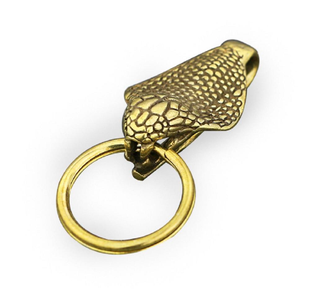 - 【匿名配送】真鍮製 コブラ キーホルダー 蛇 ヘビ ベルトーループ 3-1