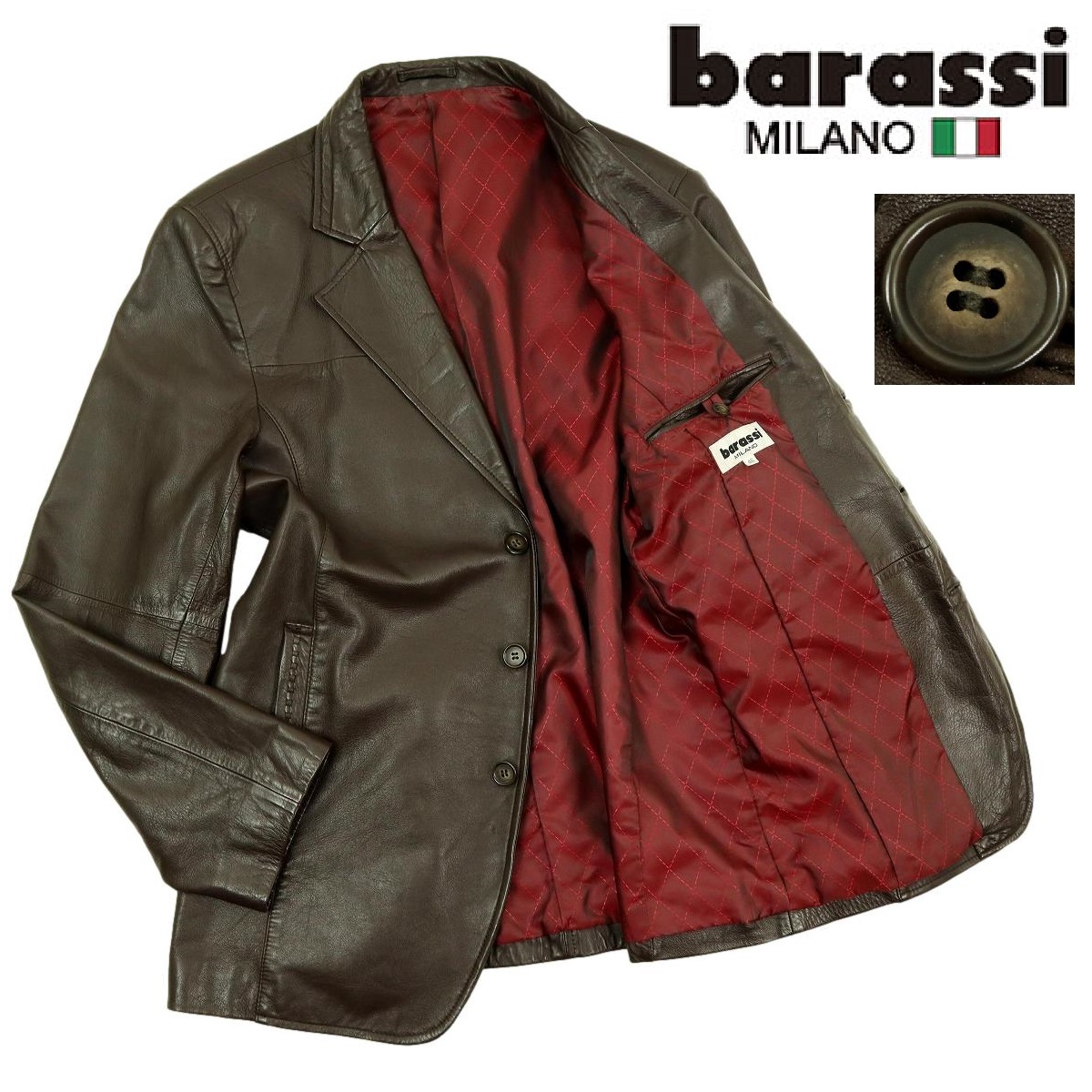 - 【S2807】【羊革】barassi バラシ レザージャケット レザーテーラードジャケット オールレザー ラムレザー サイズ46