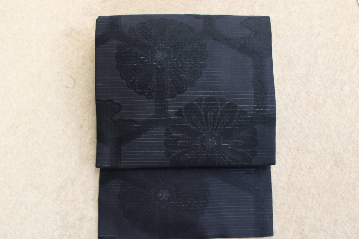 - きもの今昔5458 黒の礼装 夏用喪の名古屋帯 正絹九本絽の大亀甲に菊文様の柄 未使用品