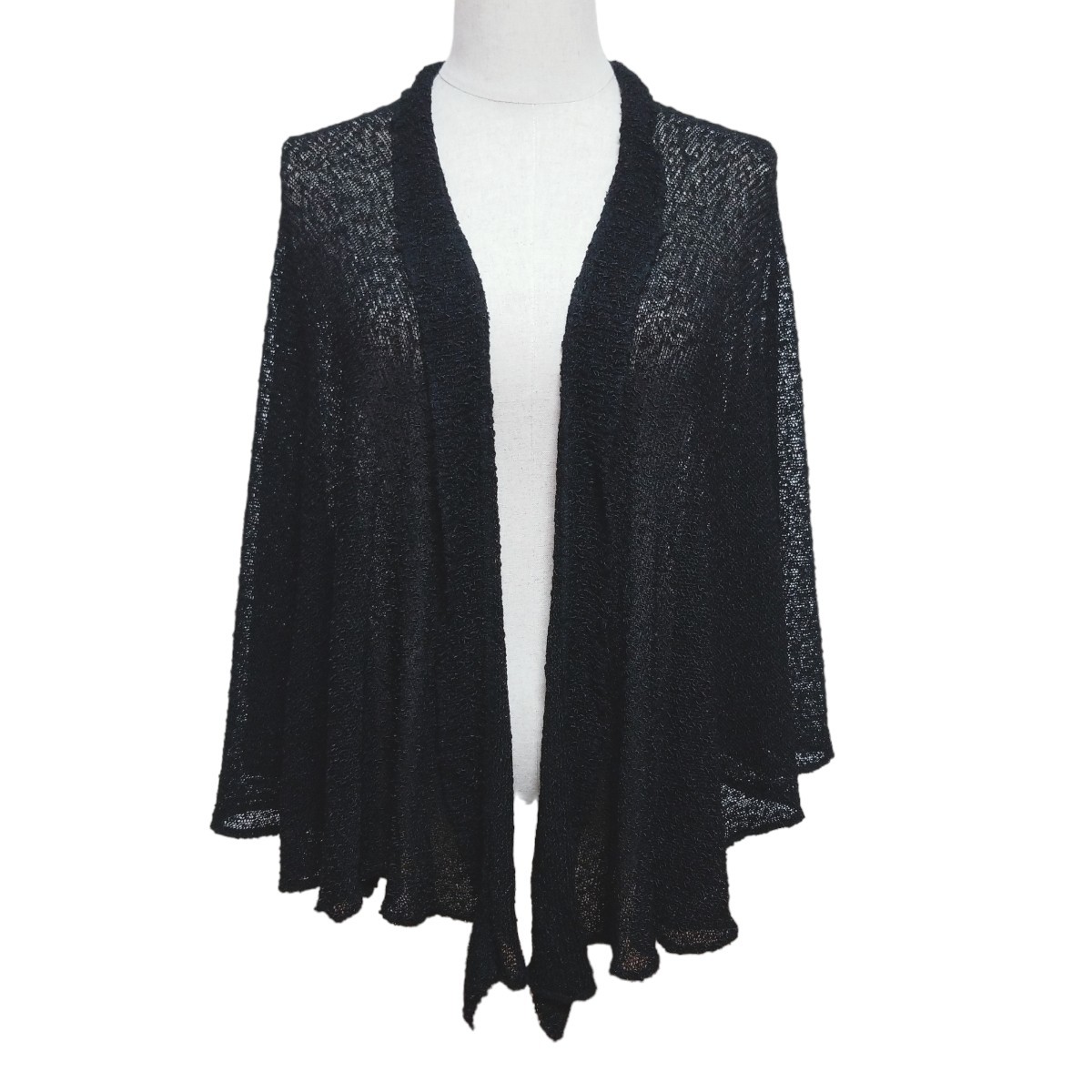 - Y585【美品】シアー ショール風カーディガン ポンチョ ボレロ ボタンレス 透かし編み レディース 9号 M ブラック 黒 美しいドレープ 上品
