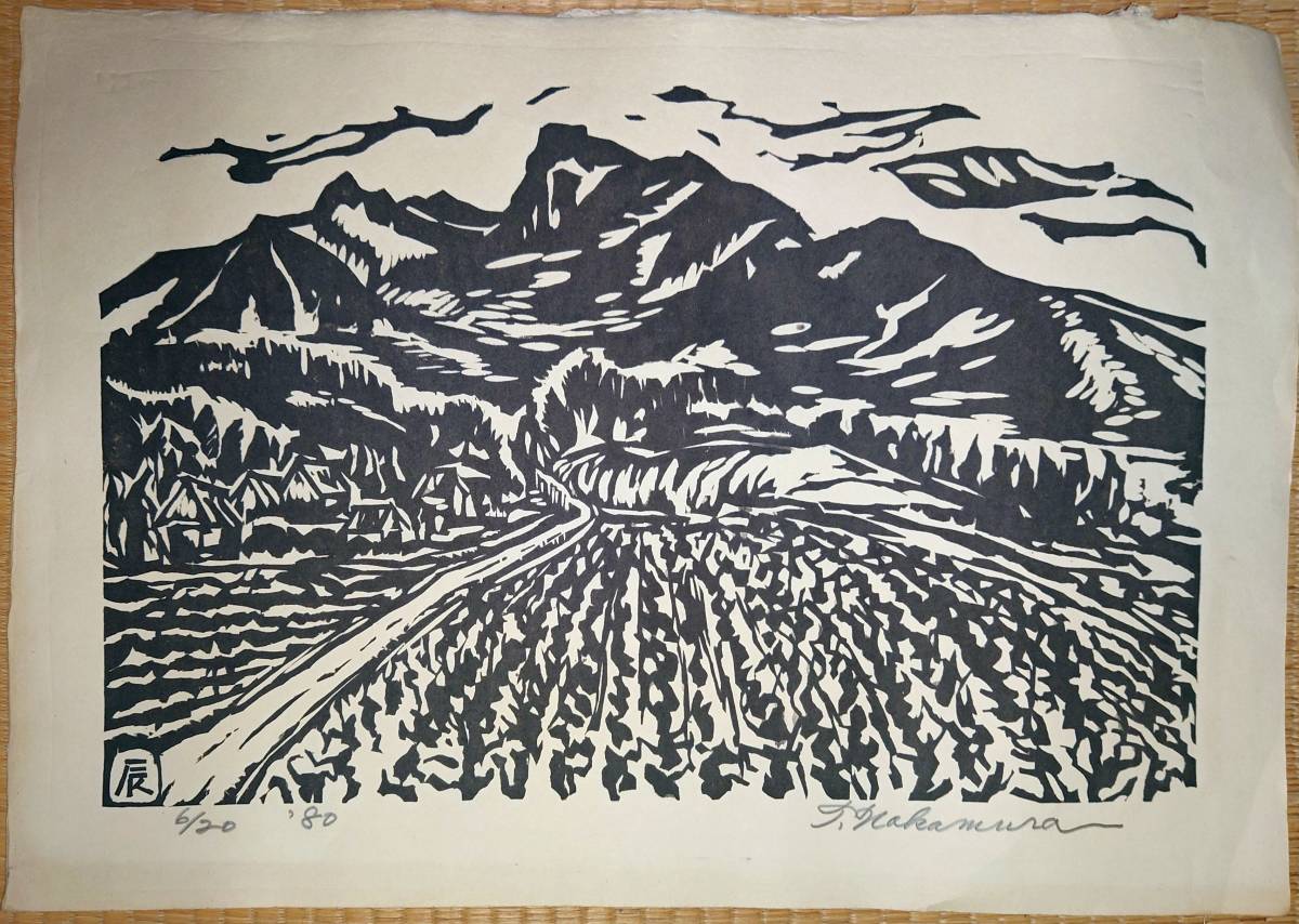 - f23080419〇版画 中村辰 里山 17/20 1975年〇和本古書古文書
