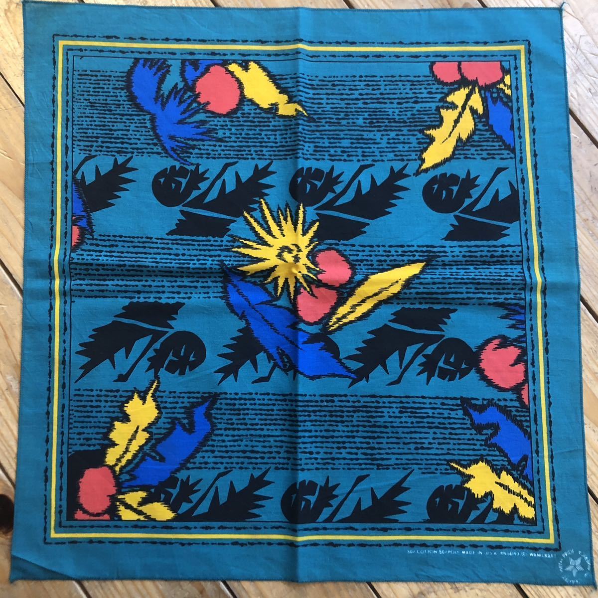- 送料無料 Vintage バンダナ WAMCRAFT ワムクラフト 総柄 フェザー グリーン Made in USA アメリカ仕入れ 雑貨 ハンカチ ヴィンテージ A0697