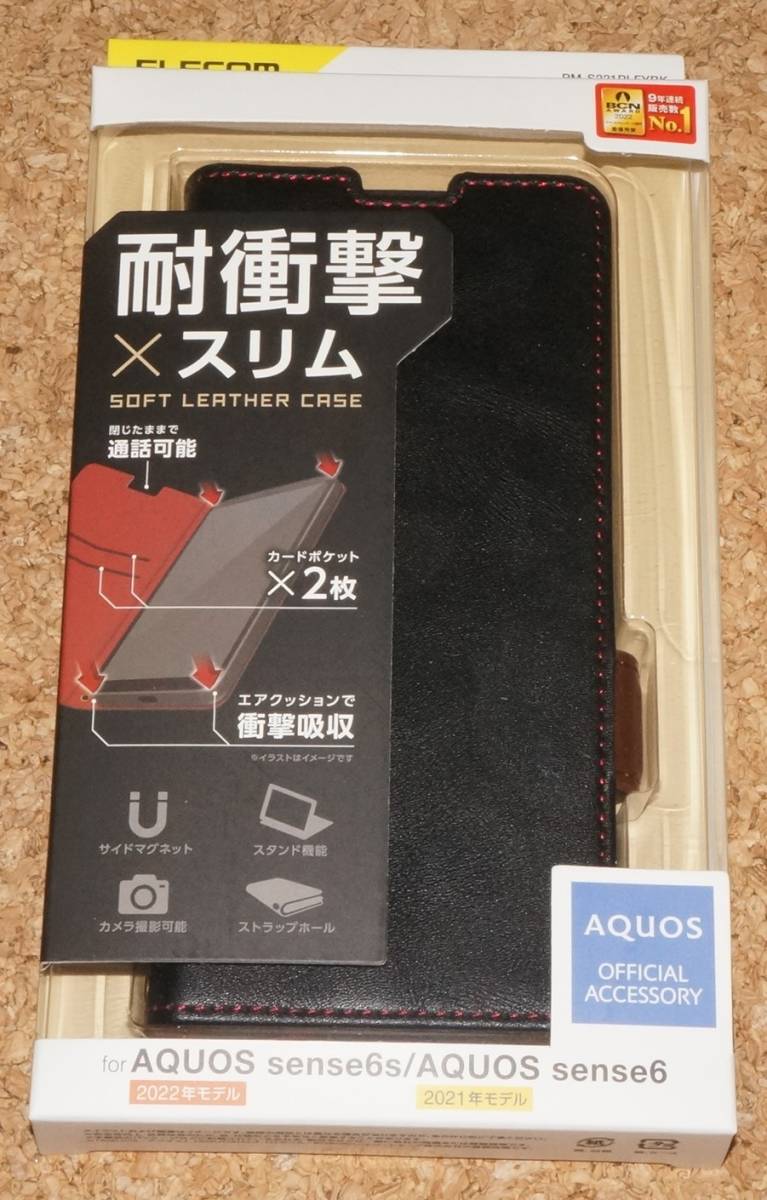 - ★新品★ELECOM AQUOS sense6s/6 レザーケース 耐衝撃×スリム ブラック