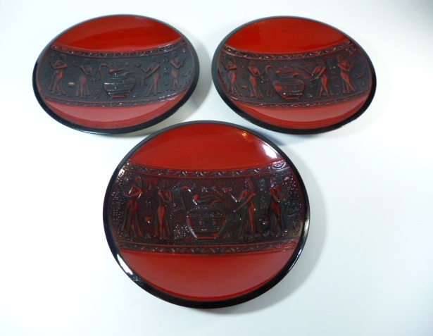- ¶ 古代エジプト文様 皿 小皿 絵皿 3枚 ¶ エジプト お皿 ヒエログリフ 菓子皿