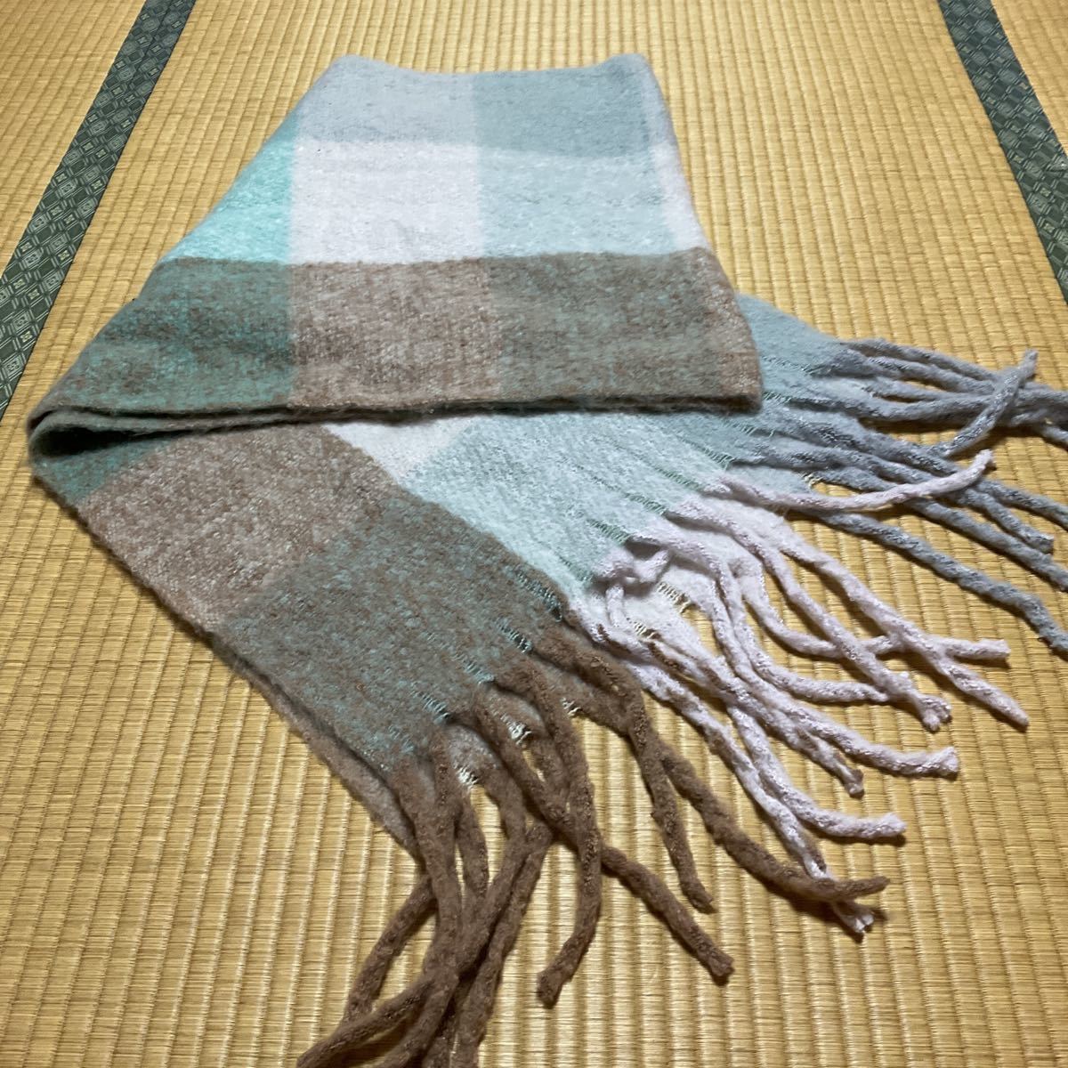 - 良質 肌触り良い 大判ストール ひざ掛け エメラルドグリーンⅹベージュ 格子柄 約200×約49cm フリンジ部分除く