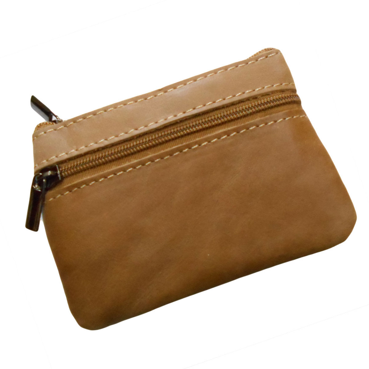 - コインケース レザー調/ブラウン/ダブルファスナー カード 小銭入れ 男性 女性 レディース メンズ 財布