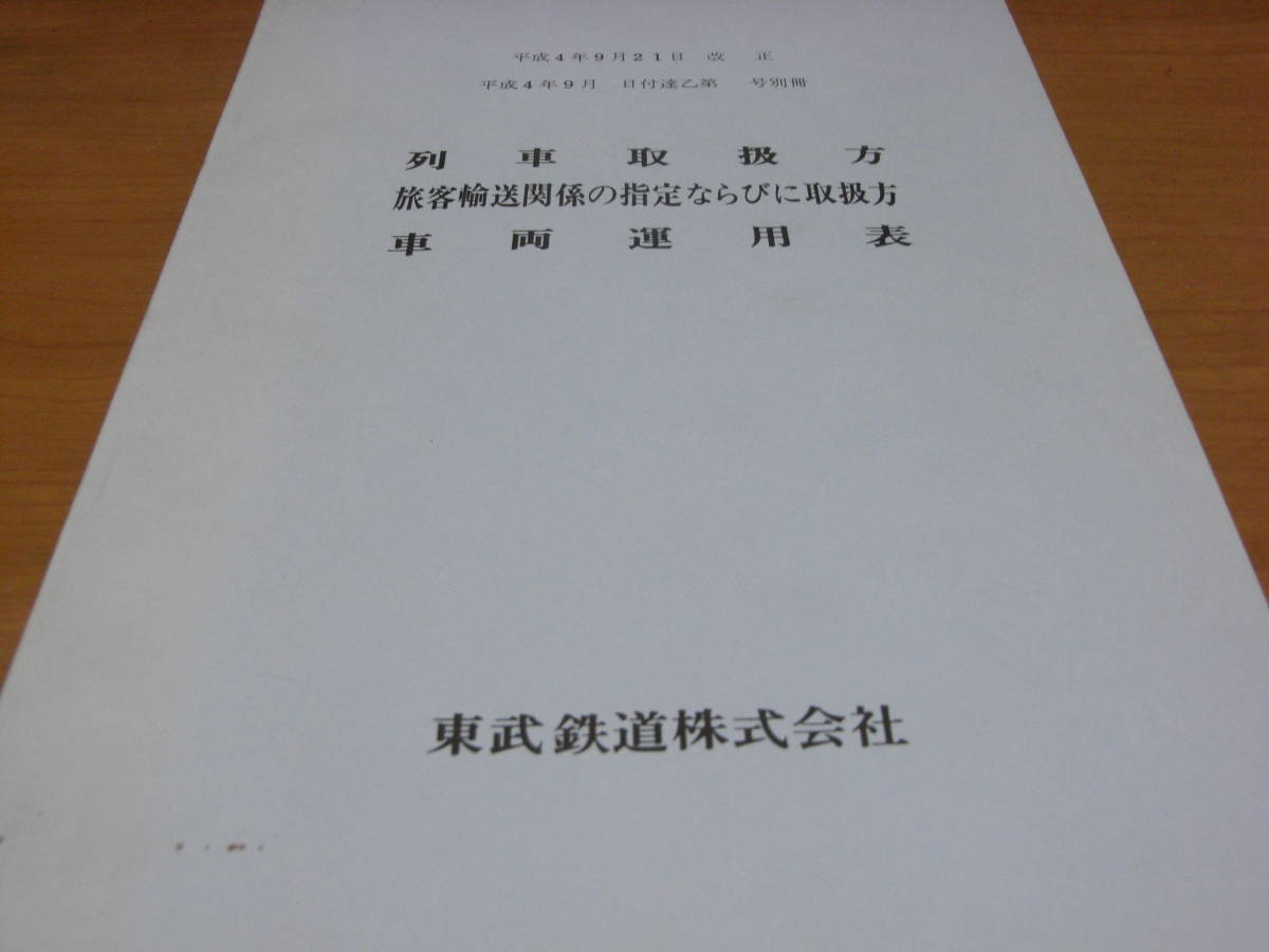 - 東武鉄道 列車取扱方 旅客輸送関係の指定ならびに取扱方 車両運用表 平成4年9月21日改正 東武鉄道株式会社