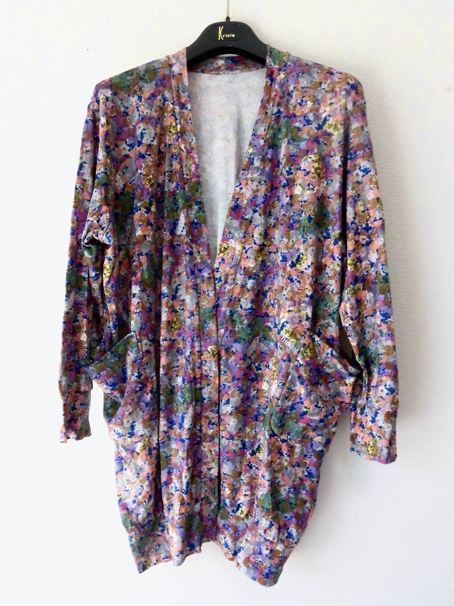 - ●極美品/メルローズ/紫系小花総柄プリント/カットソーロングカーディガン/羽織もの/サイズF/M~L相当