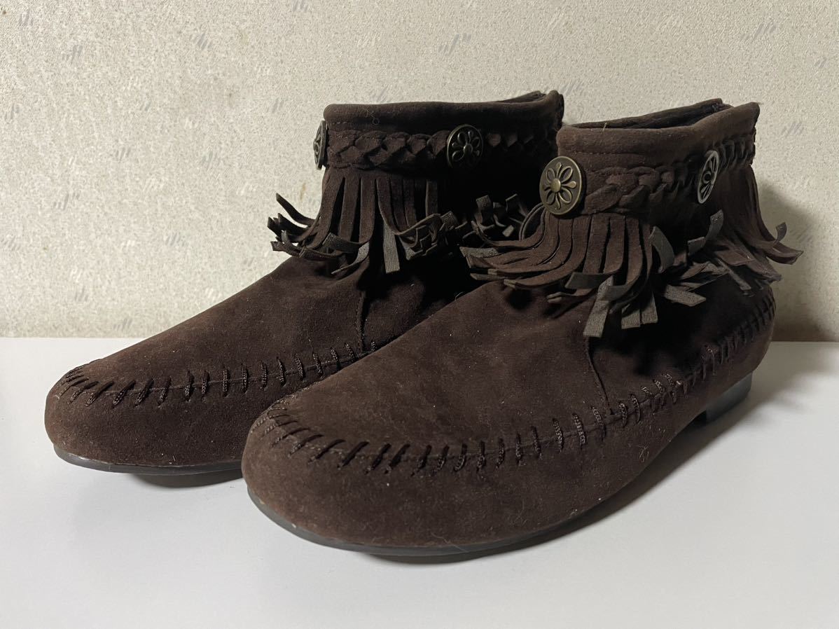 - 【Mサイズ】ウエスタン フリンジ ショートブーツ レディース ブラウン 茶色 秋 靴