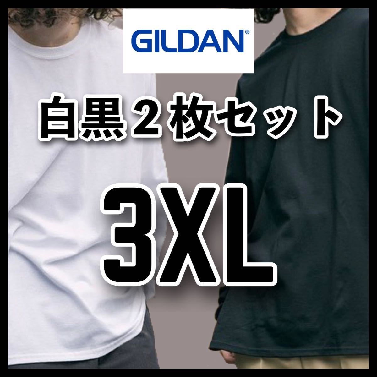 - 新品 ギルダン 6oz ウルトラコットン 無地長袖Tシャツ ロンT 白黒2枚 3XL