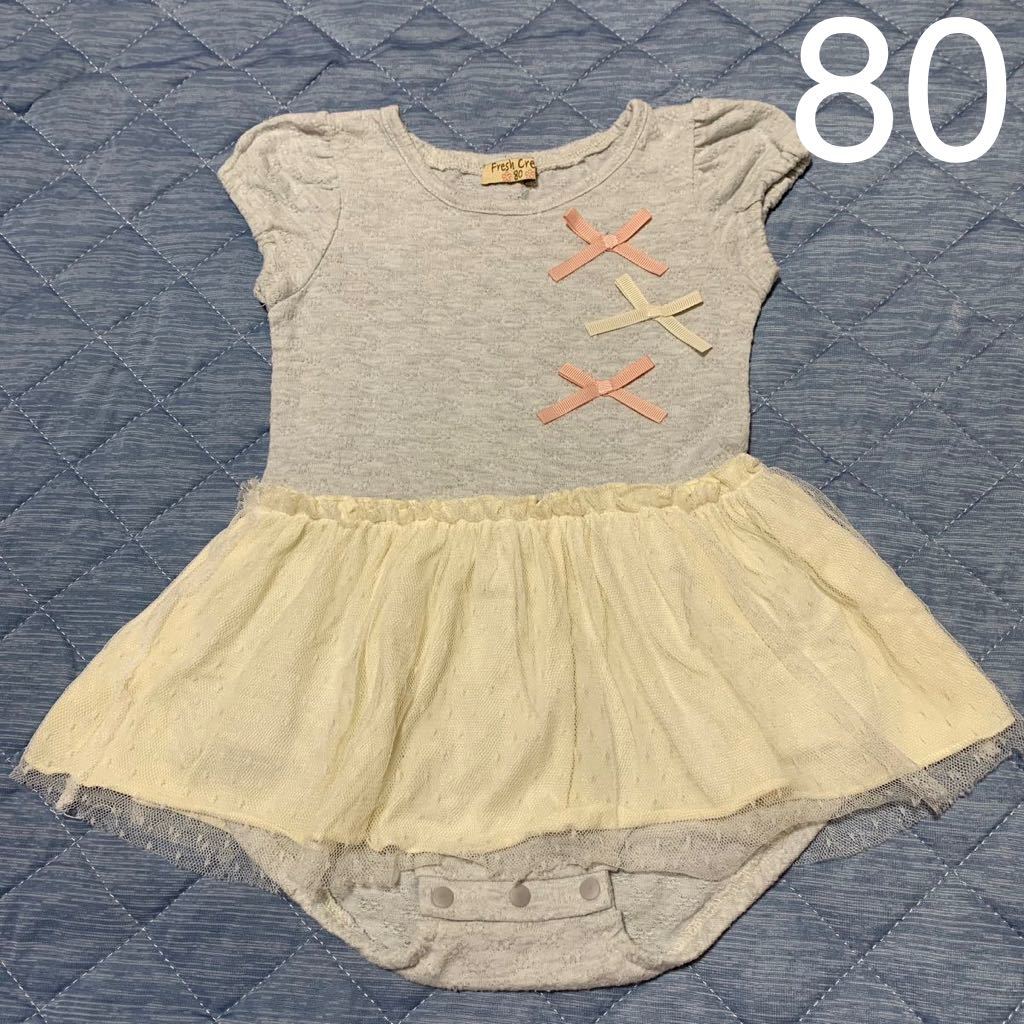 - リボン チュールホワイトスカート ワンピース風 ロンパース カバーオール 80