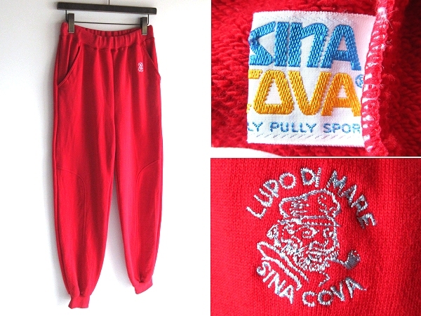 > 80s-90sビンテージ SINA COVA シナコバ 船長ロゴ刺繍 裾リブ スウェットパンツ ジョガーパンツ イージーパンツ L 日本製 イタリアブランド