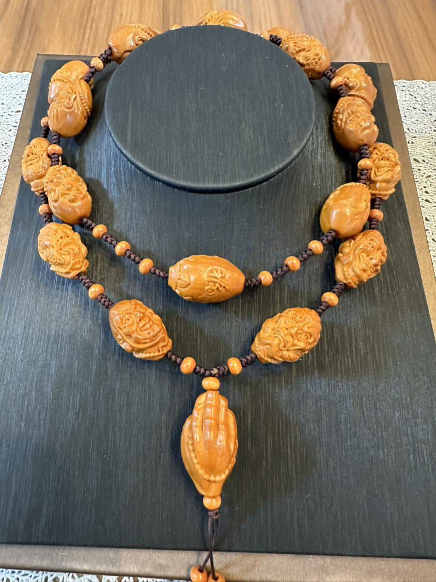 - K-304 文玩 オリーブ核彫刻 十八羅漢 ルドラクシャ ネックレス お守り