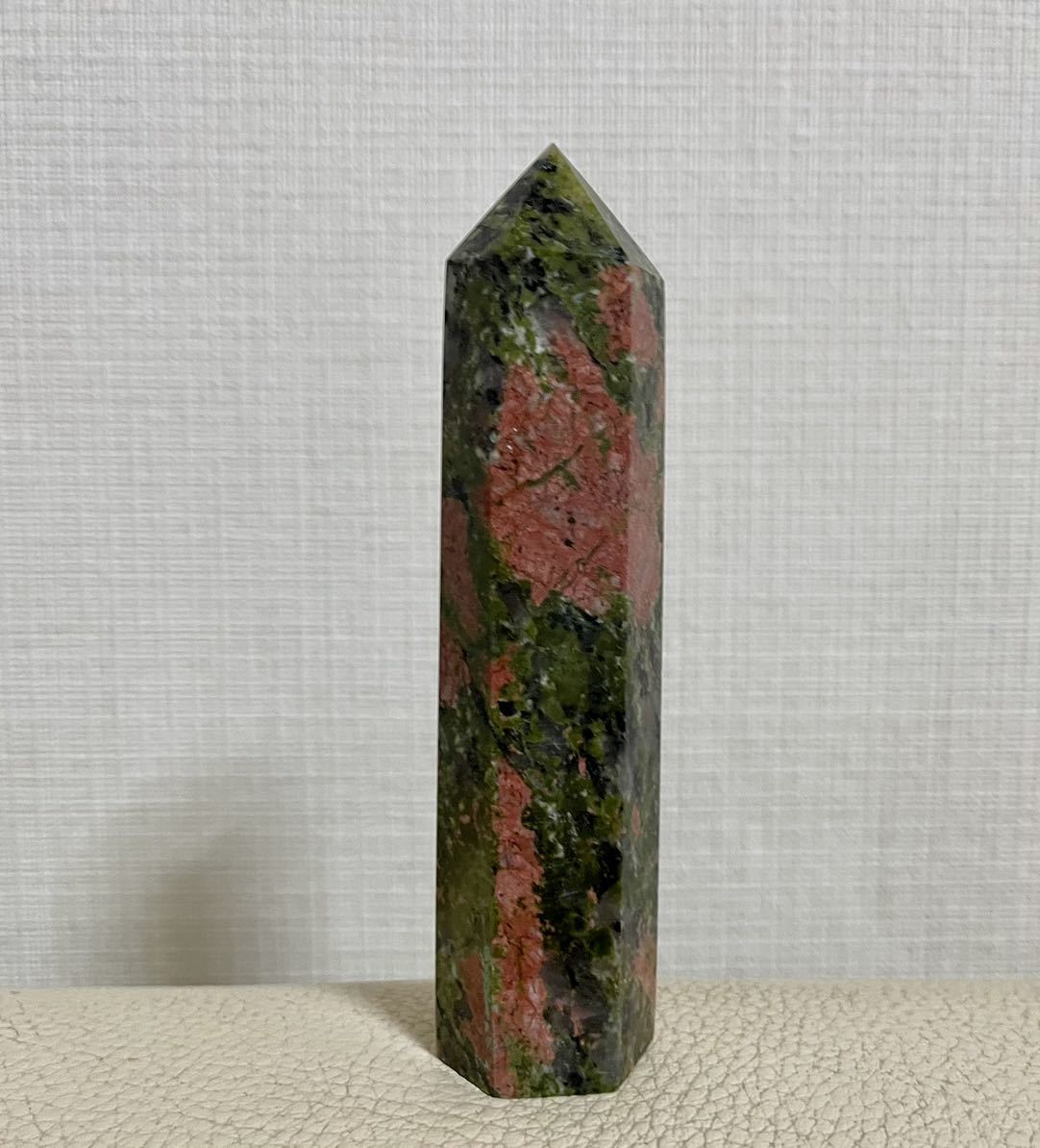- ユナカイト 天然石六角柱 002 ポイント 置物インテリア パワーストーン 風水晶 魔除 お守 幸運 ラッキー 開運