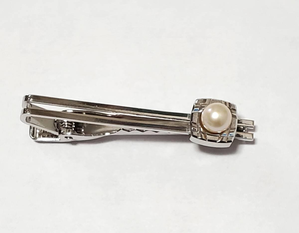 - パール 真珠 シルバーカラー タイピン ネクタイピン タイバー 6,5g 美品