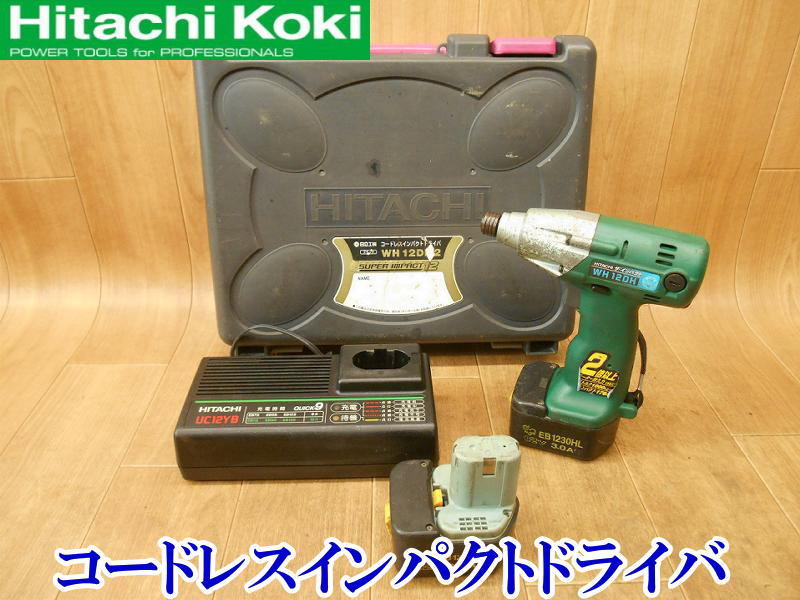 > 〇 日立工機 HITACHI ヒタチ 12mm コードレスインパクトドライバー WH12DH ドライバ 充電式 バッテリー2個 ケース付き コードレス