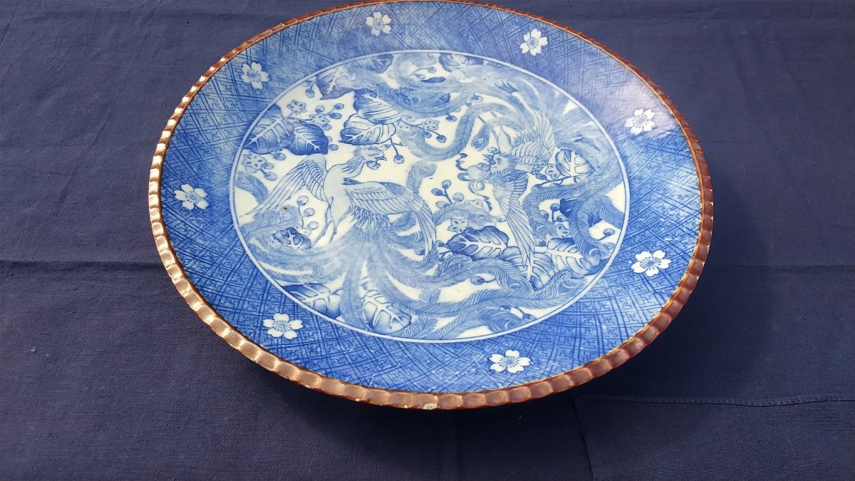 - 明治大正期 印判手いげ皿 鳳凰文 山徳窯 ヤマトク印