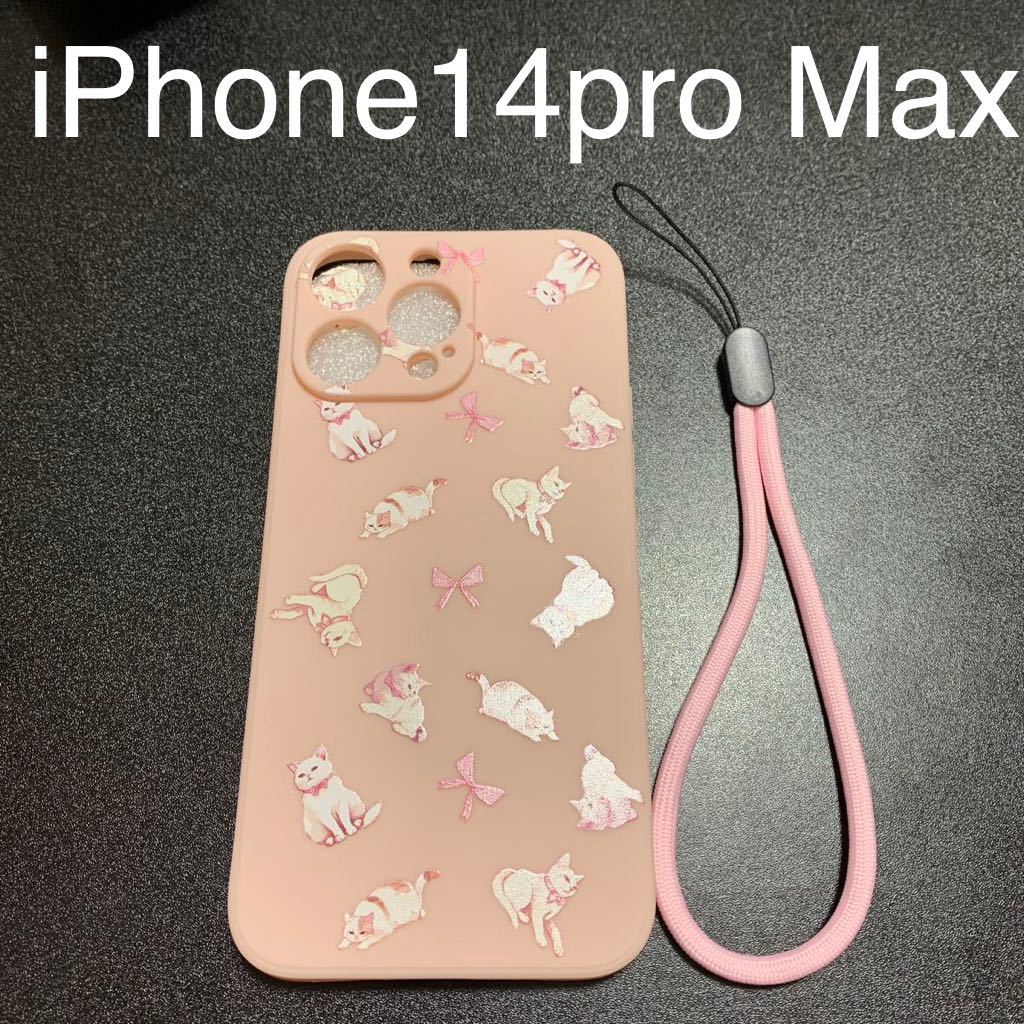 - 夢可愛い 猫 リボン ストラップ付き iPhone 14 pro Max ケース