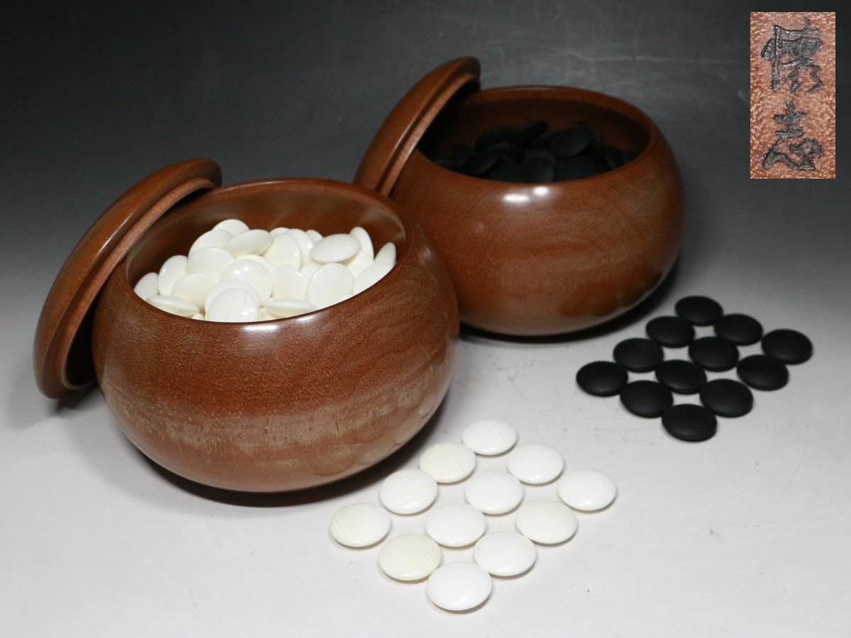 - ◆囲碁道具・懐志造・碁笥・碁石入・碁石・30号・蛤白 181個・那智黒 181個◆aa928