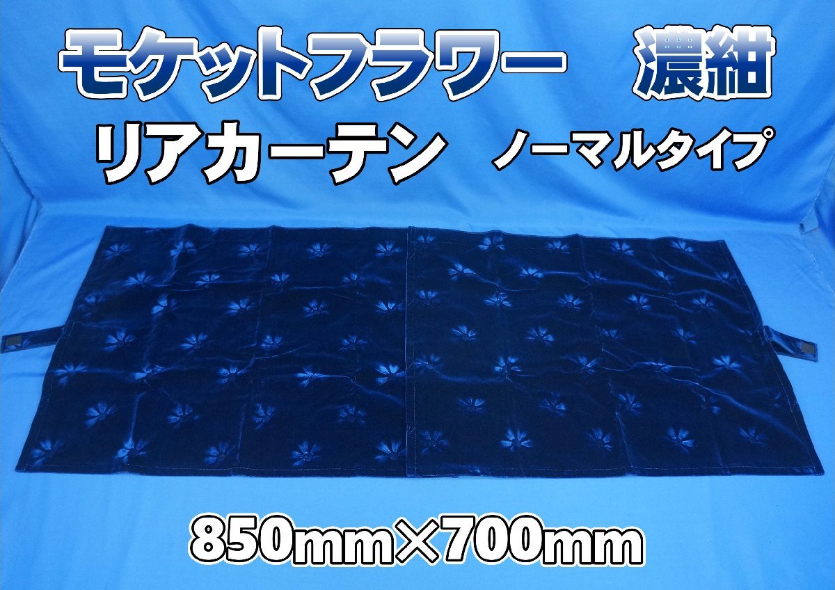 - モケットフラワー コスモス リアカーテン 横850mm×縦700mm 濃紺
