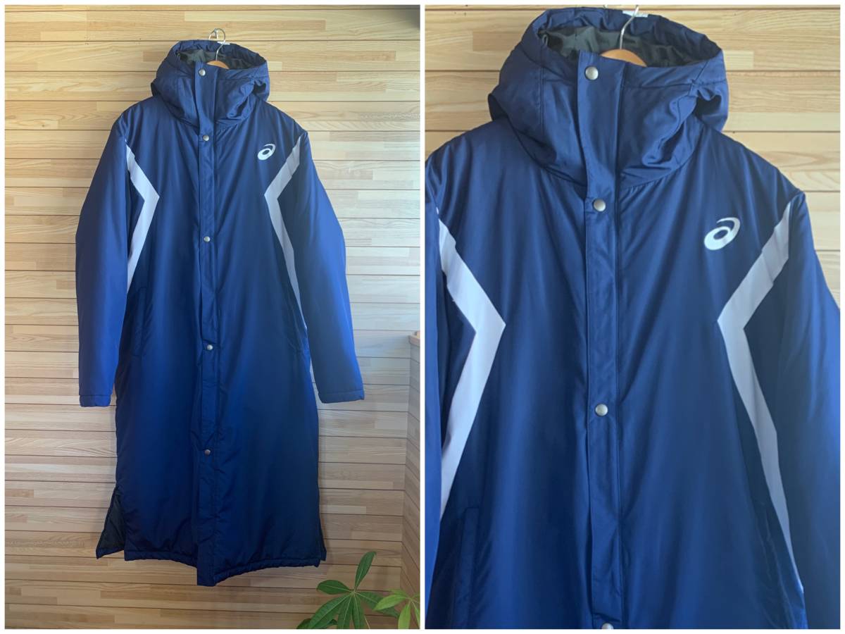 > #セール★訳あり★ASICS アシックス 防風 保温 撥水 防寒 ベンチコート 中綿★サイズ XL★ダウンジャケット ロングコート ボアコート