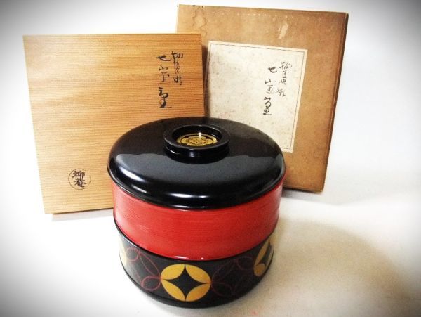 - 睦】柳菴 七宝重 初瀬川柳庵 柳菴好 弐段重 天然木 本漆器 共布 共箱■