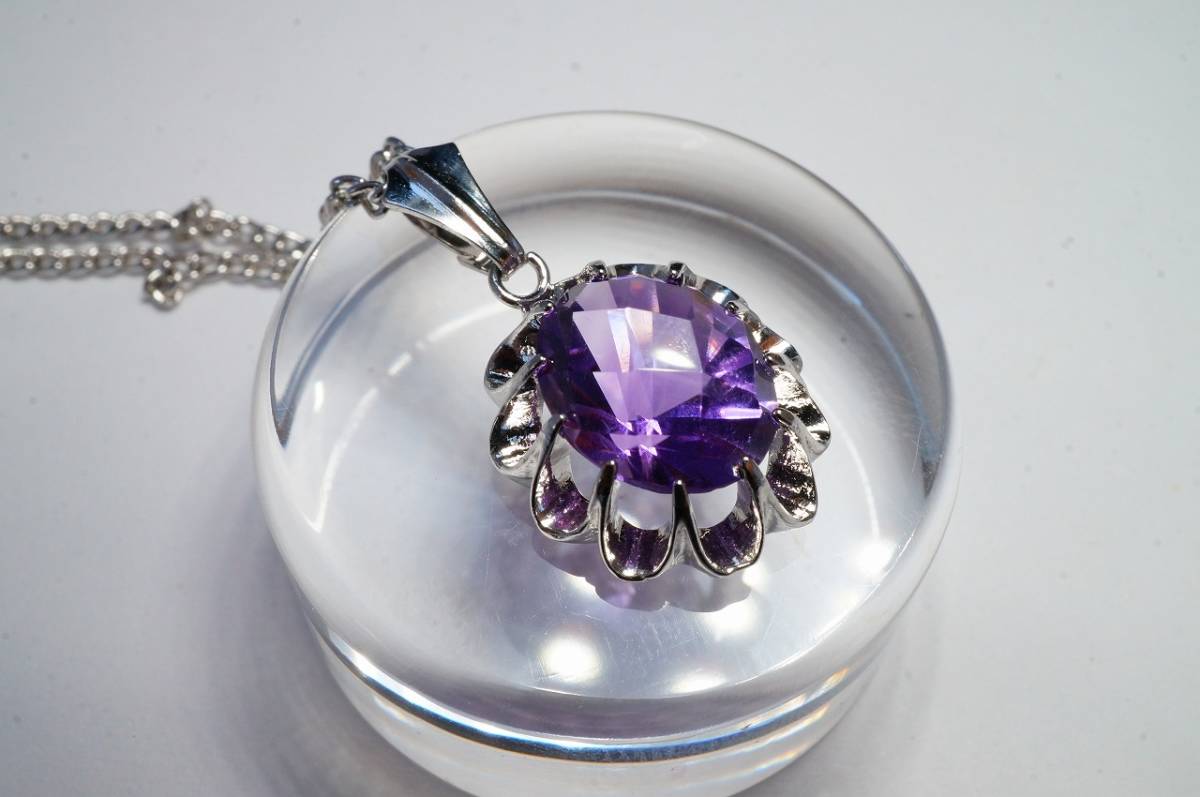 - 【特別即決価格!早い者勝ち!】極上天然紫水晶(アメジスト)オリジナルカット高透明度ペンダント③真鍮金具