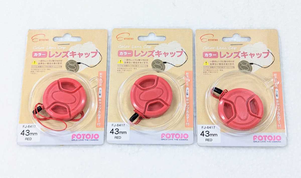 - ■エツミ カラーレンズキャップ 43mm レッド 3個セット ■9067