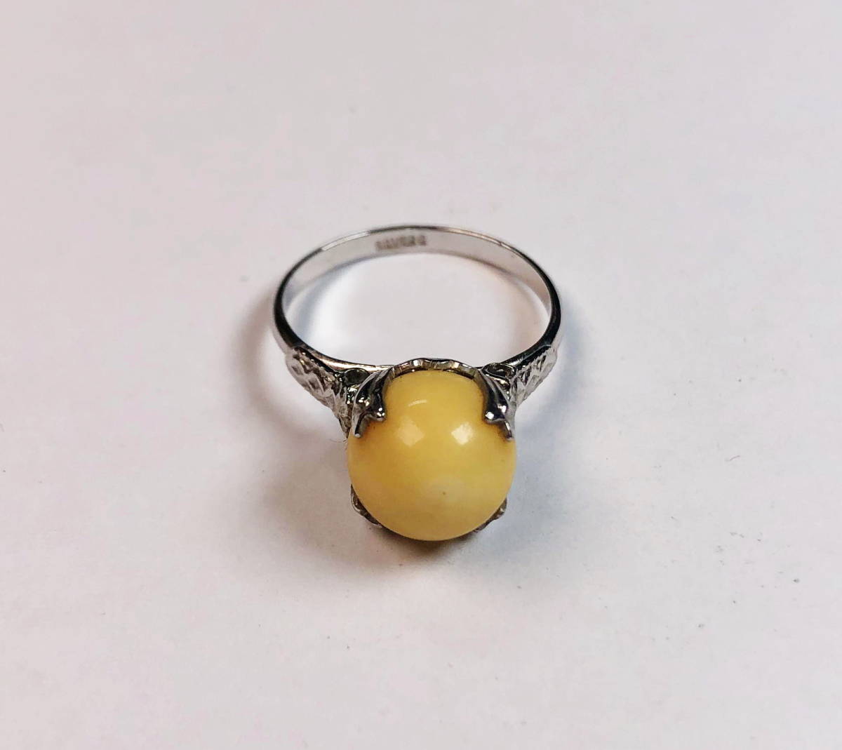 - ヴィンテージ 珊瑚 リング デザイン 指輪 15.5号 玉径 10mm シルバー 刻印あり - ac15-29