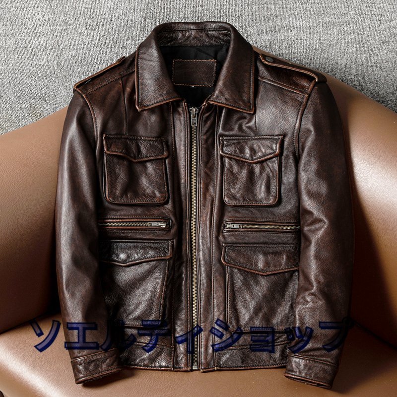 - 特価★レザージャケット メンズ ハレージャケット バイクジャケット カウハイド ユーズド加工 高級 牛革 本革 革ジャン S~5XL