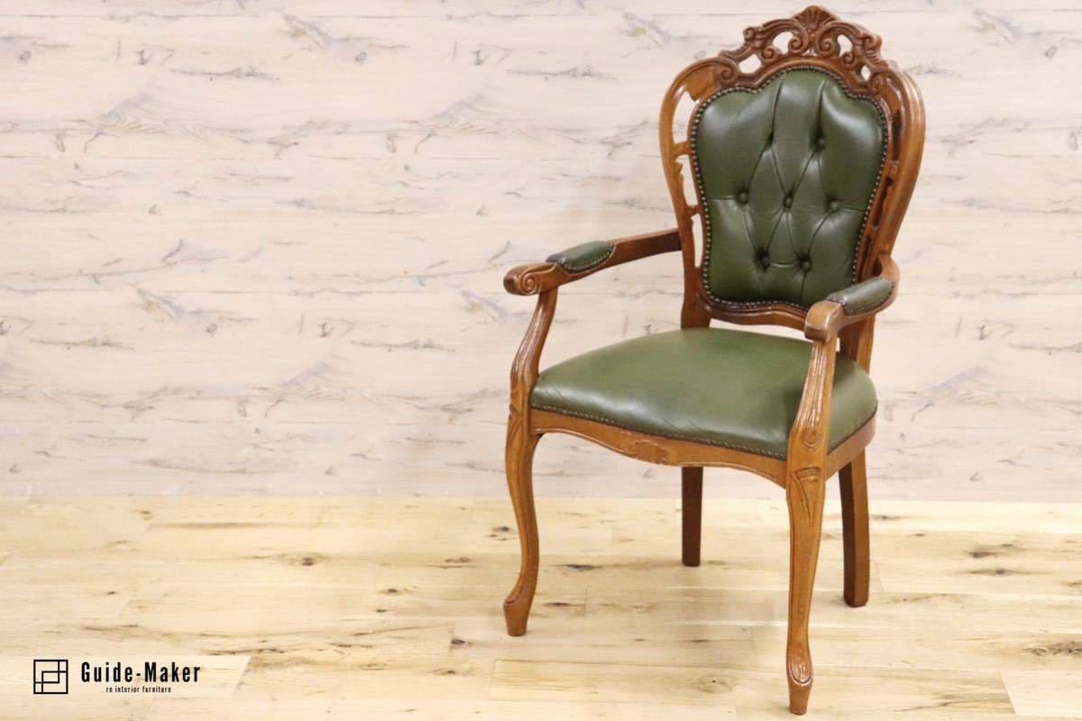 - GMGK317B○イタリアヴィンテージ ヨーロピアン ヴェローナクラシック ダイニングチェア 革張り 猫脚 ヨーロッパ家具 アンティーク