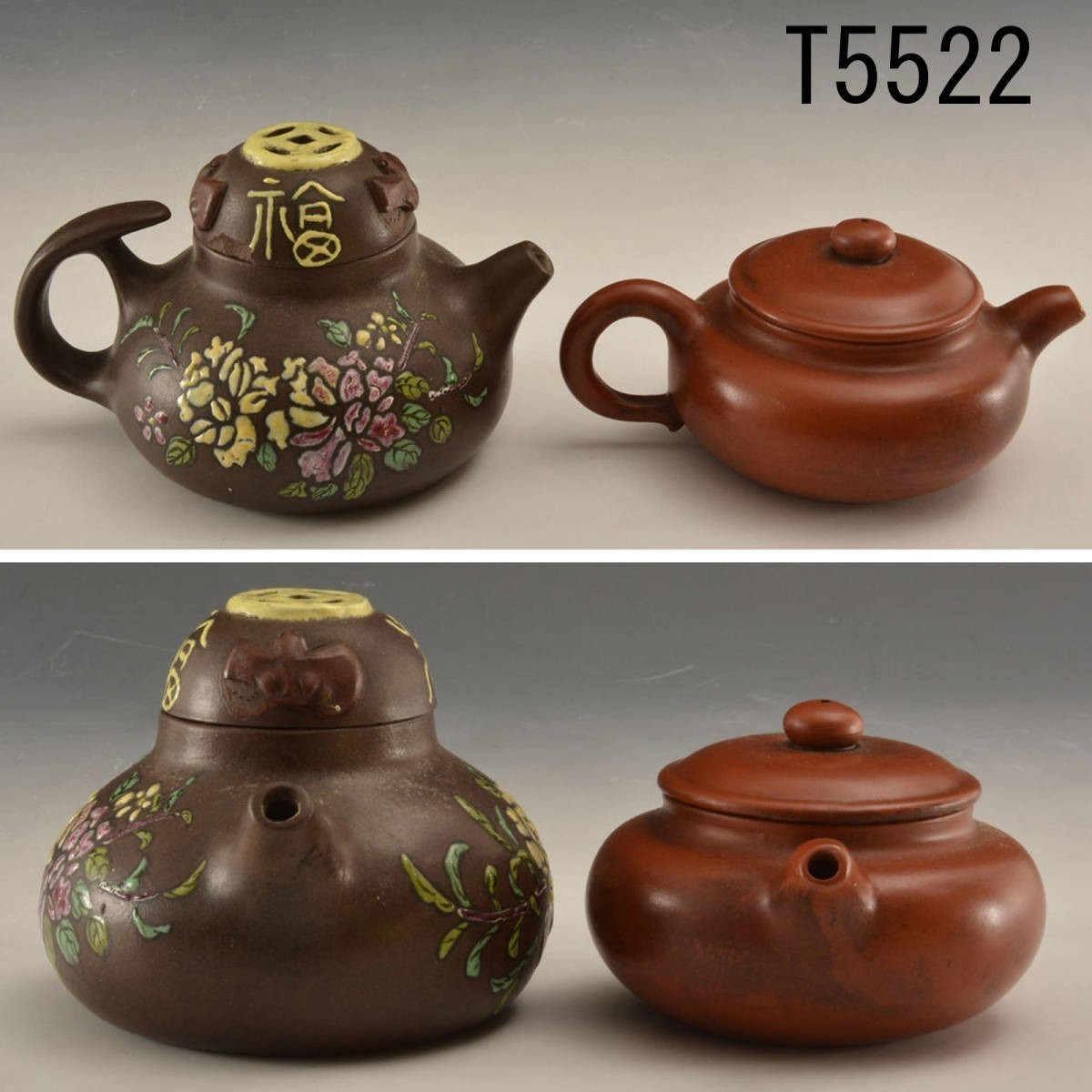 - T05522 朱泥急須 189g・紫泥彩色急須 309g:真作