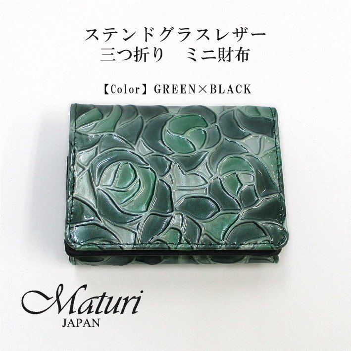 - 【Maturi マトゥーリ】ステンドグラスレザー 三つ折り ミニ財布 牛革 女性 プレゼント MR-104 GREEN 定価16500円