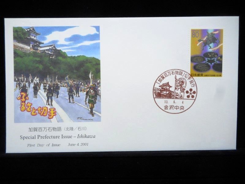 - ふるさと切手 加賀百万石物語 2001年6月4日 金沢中央 初日カバー FDC 日本切手 L-122
