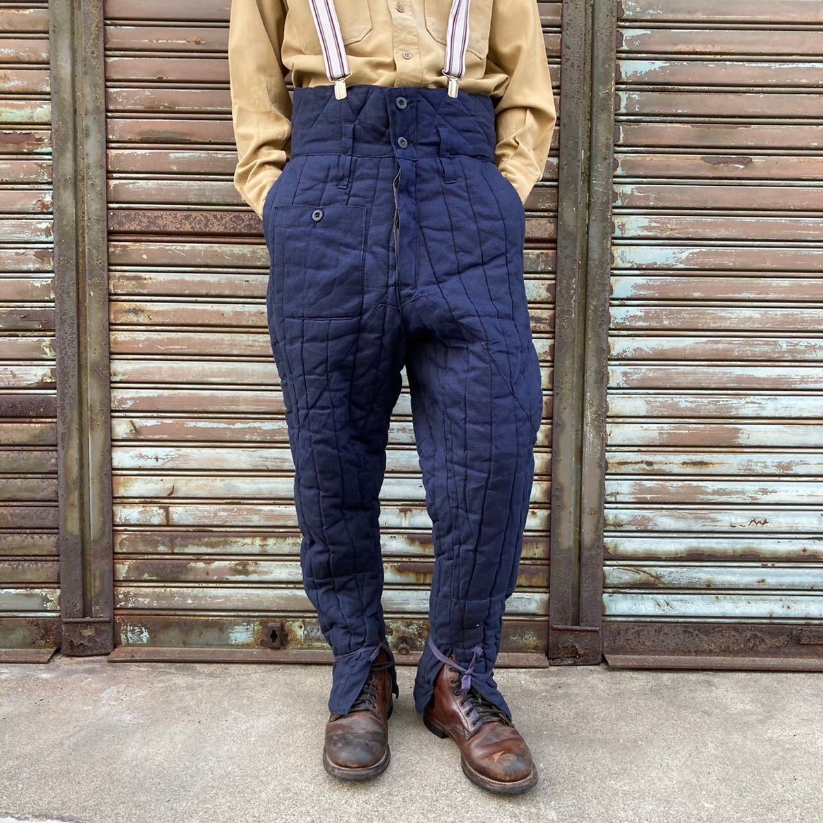 > デッドストック 50s Euro Vintage ユーロ ヴィンテージ 中綿 キルティング コットン ワーク ミリタリーパンツ 軍物 60s P1960 ネイビー